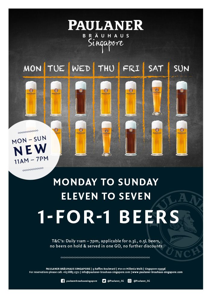 T&C’s: Daily 11am – 7pm, applicable for 0.3l and 0.5l beers. Both beers served together. Not applicable for further discounts or promotions.