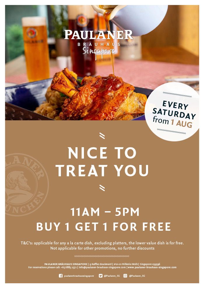Pork knuckle or Schnitzel, sausages or 1/2 roast chicken. It‘s your choice! Every Saturday from 11am to 5pm - buy 1 and get 1 dish for free!